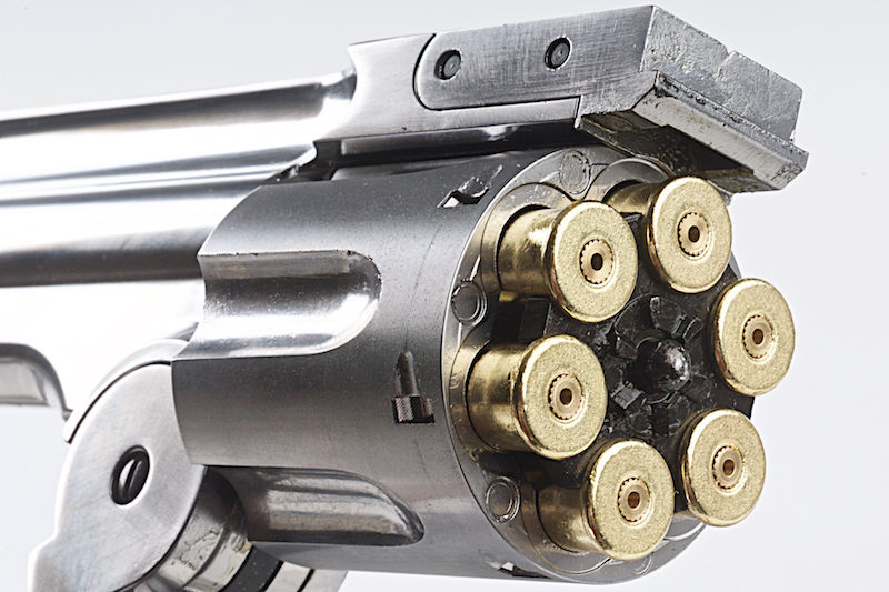 A Top-Break Revolver is a quick method to ejecting the shells as it requires breaking the revolver open, via a lever in front of the hammer, for reloading which also operates the extractor. This removes the spent cartridges from the cylinder. It only works if you top-break it with speed and this feature is very cool. It also uses the same shells as the Gun Heaven Webley making things all the more convenient.