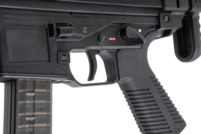 At its core, the SMG is constructed from robust high-strength polymer, complemented by an aluminium bolt that ensures a rapid cyclic rate of fire while maintaining durability for extensive use. Many high-stress components are reinforced with steel parts, enhancing longevity for critical elements such as the hammer, sears, bolt release, and pins, ensuring reliable performance over time. A layer of POM material is inlaid into the hammer, providing durability and low friction to reduce wear during interactions with the bolt. The SMG delivers a satisfying recoil for such a compact platform, with dependable accuracy suitable for close to mid-range engagements. Its lightweight design and compact form factor facilitate convenient and swift manipulation in confined spaces, allowing owners prolonged use during milsim skirmishes. The compatibility with Glock magazines offers an additional advantage for those who use Glock as their secondary weapon, enabling an increased overall magazine capacity in their loadout.