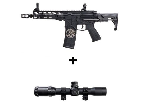 This bundle includes the Hawkeye, an affordable and extremely clear a real steel scope that can adjust its magnification. The scope comes with a scope mount set, cover, and honey comb style defuser.